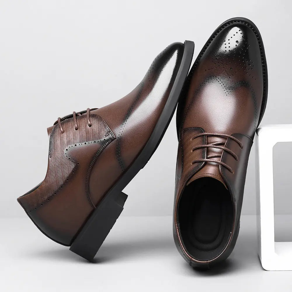 Confectionnée en cuir de vachette haut de gamme, la Dominus incarne la rencontre parfaite entre élégance classique et élévation contemporaine. Grâce à sa semelle intérieure dissimulée offrant jusqu’à 8 cm de hauteur supplémentaire, cette chaussure habillée intemporelle vous donne l’avantage, que ce soit en réunion, lors d’événements ou au quotidien.