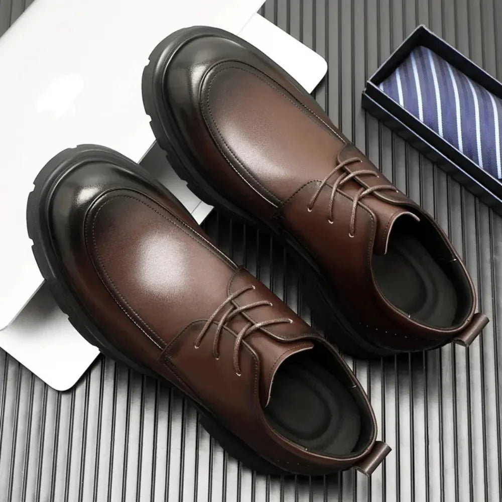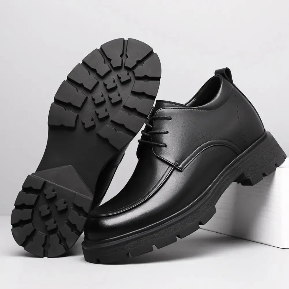 Une chaussure habillée distinguée, confectionnée en cuir haut de gamme, disponible en brun classique et noir. Avec une élévation de 8 cm, le Regent allie parfaitement sophistication et discrète hauteur. Son design épuré est pensé pour les occasions formelles, garantissant une présence élégante et imposante. Le Regent incarne le style intemporel et le luxe raffiné, idéal pour ceux qui apprécient l’excellence discrète.