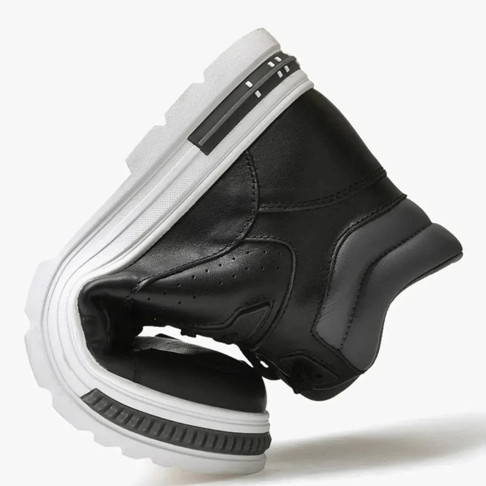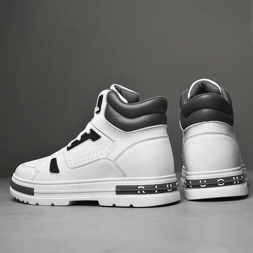 Atteignez de nouvelles hauteurs avec les Riuohi, des sneakers montantes qui redéfinissent style et stature. Gagnez en confiance grâce à une élévation discrète de 8 cm, parfaitement intégrée à leur design avant-gardiste. Rehaussez votre allure avec aisance et faites de chaque pas une affirmation de style.